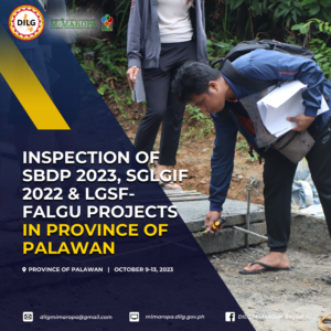 LOOK: The DILG MIMAROPA Project Development and Management Unit (PDMU) and Palawan Provincial Engineers conducted inspection and validation of Support to Barangay Development Program (SBDP) 2023 projects, inspection of 2022 Seal of Good Local Governance Incentive Fund (SGLGIF) projects and dialogue for Local Government Support Fund-Financial Assistance to Local Government Units (LGSF-FALGU) in Province of Palawan on October 9-13, 2023.
