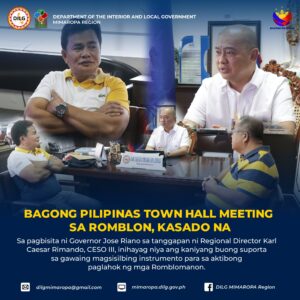 Sa pagbisita ni Governor Jose “Otik” Riano sa tanggapan ni Regional Director Karl Caesar Rimando, CESO III, inihayag niya ang kaniyang buong suporta sa gawaing magsisilbing instrumento para sa aktibong paglahok ng mga Romblomanon.