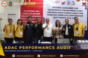 Matagumpay na naisagawa ng panrehiyong tanggapan ng DILG MIMAROPA, katulong ang ibang ahensya ng pamahalaan at Civil Society Organizations, ang iba’t ibang uri ng Performance Audits/Assessments sa mga pamahalaang panlalawigan at Highly Urbanized City (HUC). Sa loob ng isang linggo, masusing sinuri ng Regional Assessment Teams/Committee ang functionality ng mga local councils at LTs sa mga sumusunod na petsa: