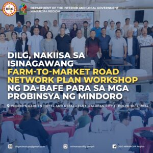 Matagumpay na isinagawa ng Department of Agriculture sa pamamagitan ng Bureau of Agriculture and Fisheries Engineering (DA-BAFE) kasama ang DILG, DOT, DPWH, DTI at DAR ang “Workshops on the Localization of the National Farm-to-Market Road Network Plan (FMRNP) 2023-2028” para sa mga probinsya ng Oriental Mindoro at Occidental Mindoro na ginanap sa Vencio’s Hotel and Restaurant, Calapan City mula Hulyo 10 hanggang 12.
