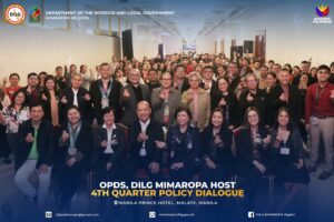 The Office of Project Development Services (OPDS), in partnership with DILG MIMAROPA, successfully held its 4th Quarter Policy Dialogue with the theme β€œCelebrating Achievements. Thriving with Resilience,” at the Manila Prince Hotel, Ermita, Manila from December 4 to 6.